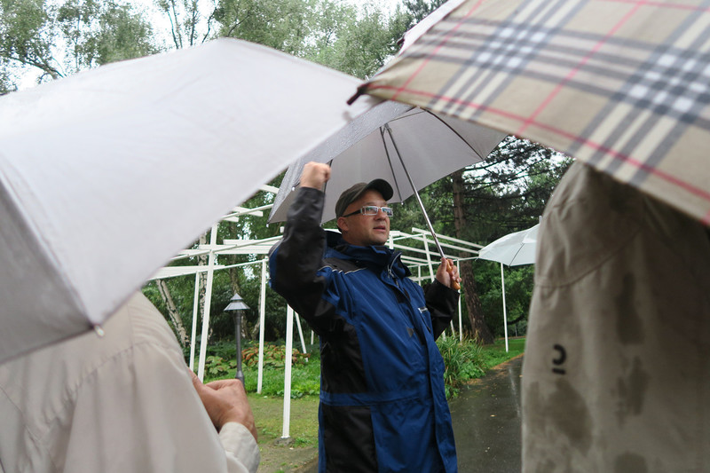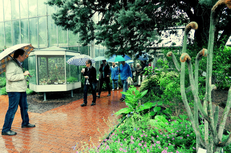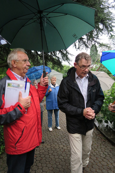 Im nicht aufhörenden Dauerregen fand sich ein kleinerer Kreis hochinteressierter Personen, die von Dr. Anhalt durch die Flora geführt wurden.